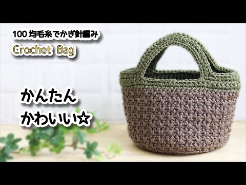 【100均毛糸】底からねじねじ柄でリバーシブルバッグ編みました☆Crochet Bag☆かぎ針編みバッグ編み方、編み物